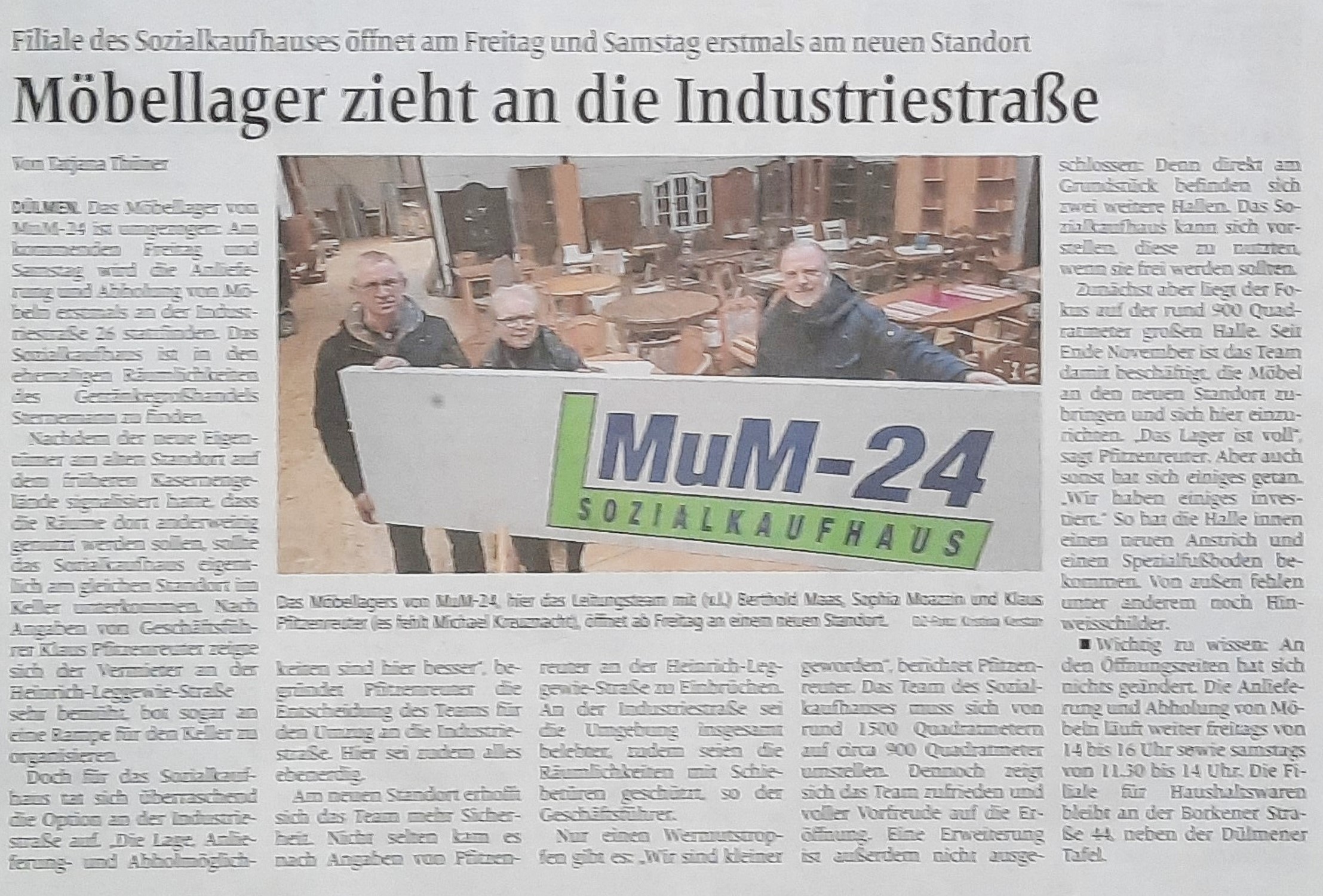Umzug der Filiale 1 in die Industriestraße 26 28 Feb 2024 Von G.Jaeschke Bericht der DZ vom 28.02.2024 Weiterlesen … Umzug der Filiale 1 in die Industriestraße 26